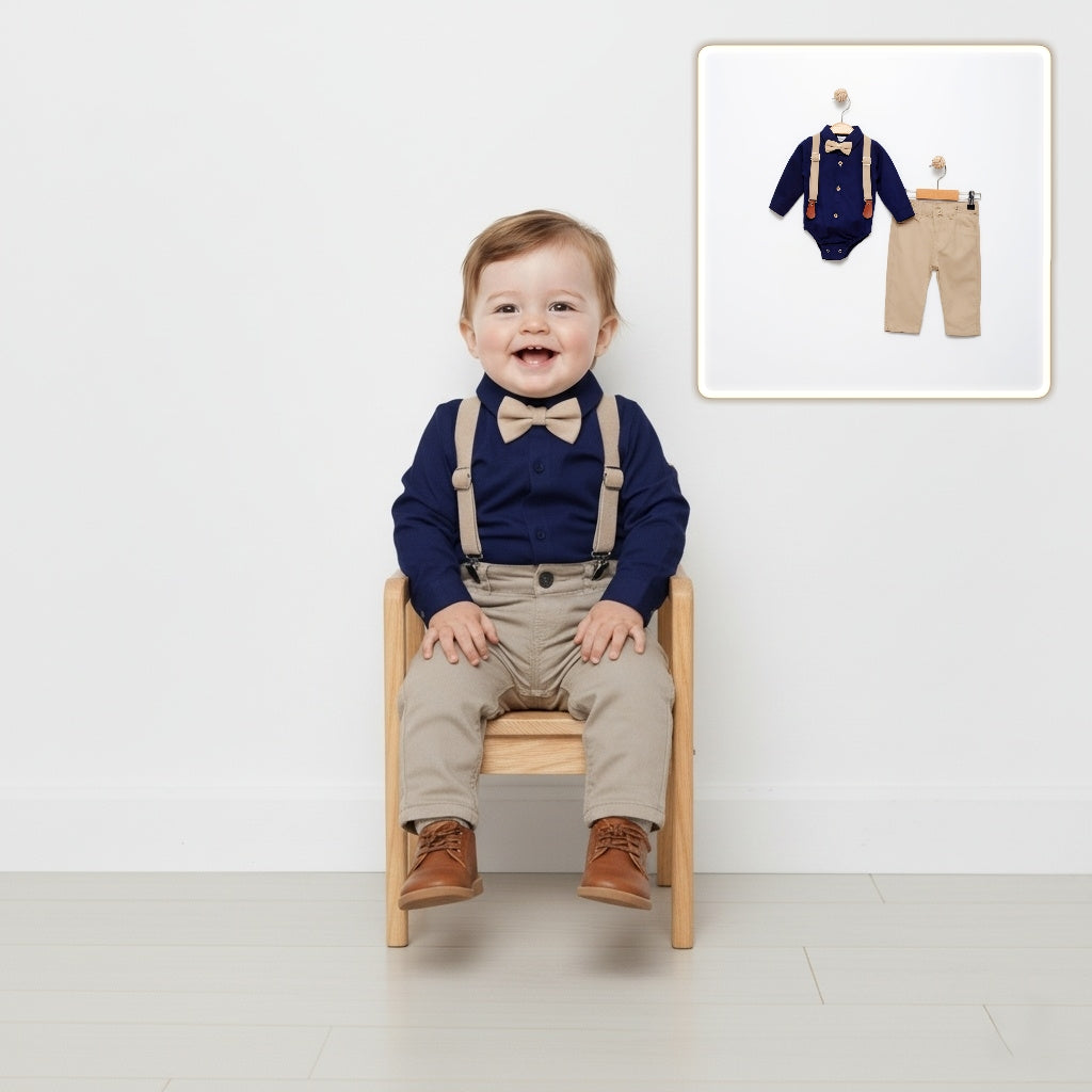 Dress your little one in style with our 2-piece dapper boy set, a perfect outfit for any special occasion or stylish outing. This charming set combines classic design with all-day comfort, making your baby the best-dressed little gentleman in the room.