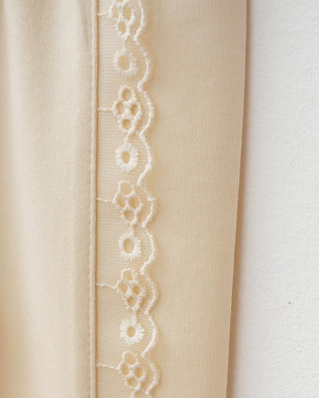 Matching pants with charming lace trim down the sides and enclosed feet for warmth.