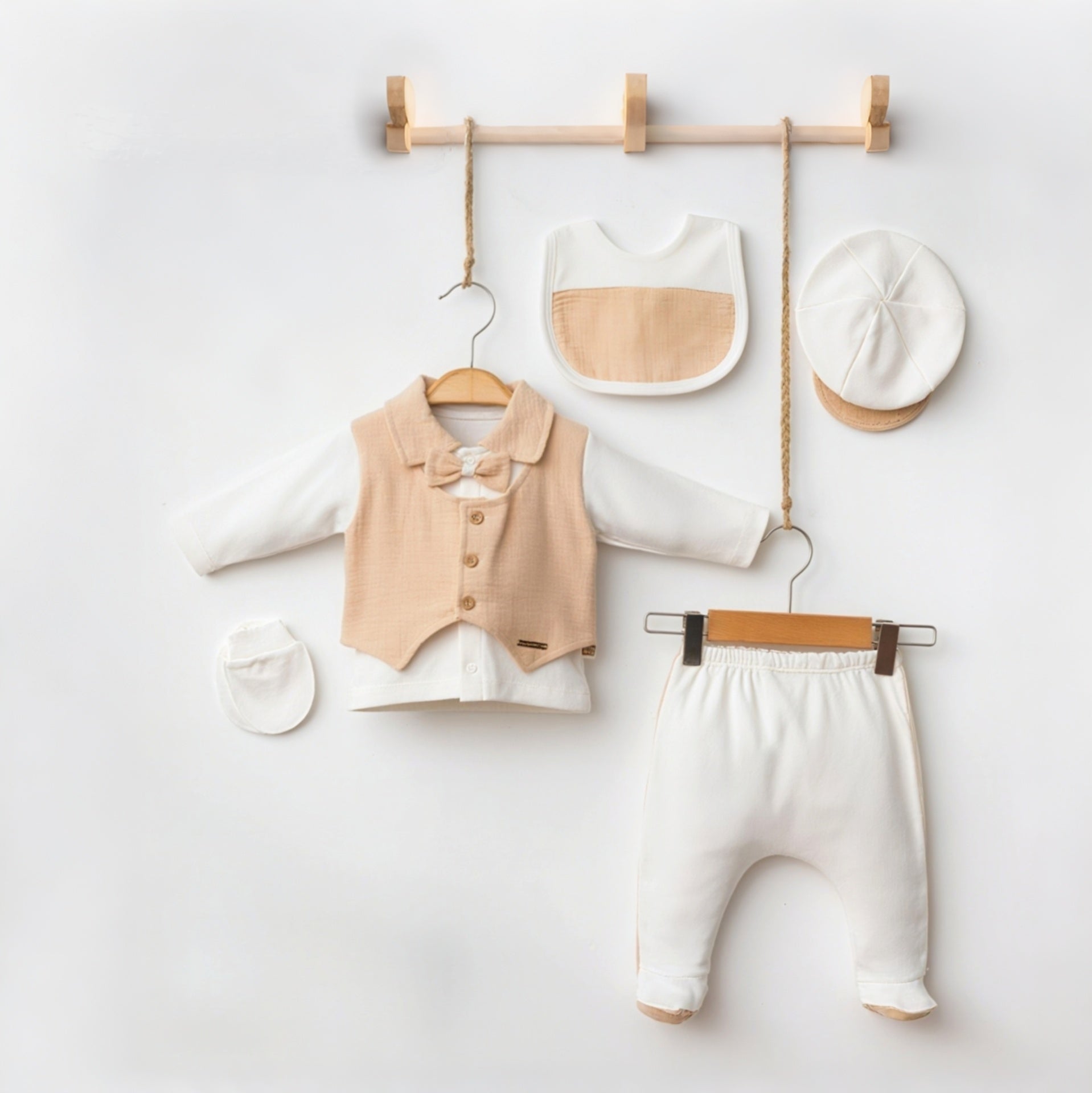 This charming 5-piece set is perfect for dressing your baby in a sophisticated yet comfortable style. Featuring a soft, neutral color palette, it's ideal for special events, celebrations, or a unique everyday look.